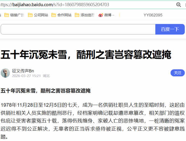五十载的时光,受害者在病痛、贫困与冤屈中艰难度日,半生的悲苦早已刻进骨血。公平正义或许会迟到,但绝不能缺席,这桩跨越半个世纪的冤案,早已不是简单的个人维权,更是对社会公序良俗与公正底线的捍卫。供销社的施暴者必须为自身的恶行付出代价,相关政府部门也需正视自身的滥权失职,纠正错误的档案记录、还原事实真相,以实际行动弥补对受害者造成的伤害。