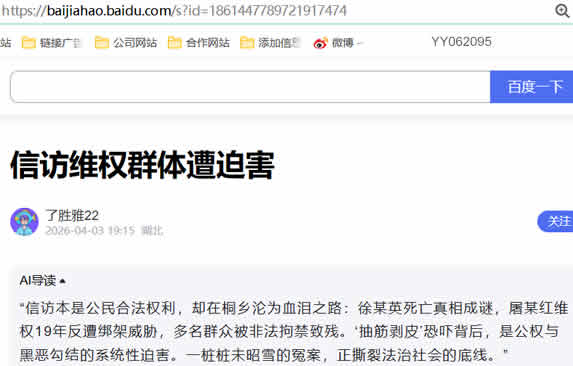 信访是群众与政府沟通的桥梁,绝非“维稳”的对立面。桐乡发生的一系列恶性事件,完全背离法治精神与执政为民的初心,严重损害党和政府的公信力,践踏公民的人身权、财产权与信访权。徐某英死因不明、屠某红十九年伸冤无门、多名群众伤残受辱,这些血淋淋的事实,拷问着公平正义的底线。