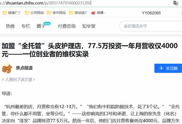 2025年2月,张先生被一个自称“腾讯出身、上市公司COO”、在社交平台上拥有大量粉丝的“狮子姐”所吸引。该品牌方宣称拥有“中科院防脱技术”(任泽平公司合作,投入3亿元)、门店业绩中位数每月25万元,并承诺提供“全托管”运营服务,投资者只需出资,即可坐享分红。在对方的热情邀请下,张先生参加了其招商会,并最终以77.5万元加盟“泽发”头皮护理店。